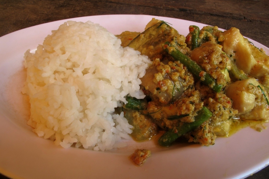 Cooking all the ingredients, it was imminently obvious the difference the fresh coconut milk made. Letting all the ingredients simmer, and once done pushing them all up on the spatula as to drain the oils made from purely the fish and coconut milk, no oil required for cooking… And it was absolutely delicious.