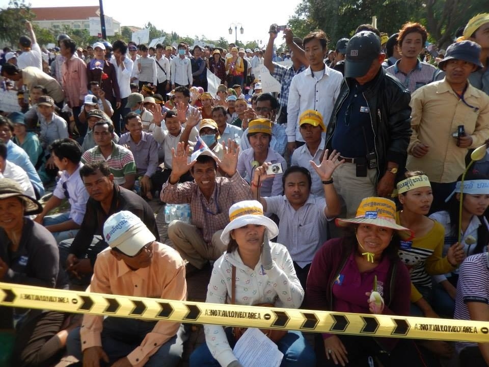 The following photos are not mine, I wasn’t brave enough to head to the protest, Elena (a girl volunteering in Siem Reap working with an NGO who is from Scotland and works for Amnesty International at home on the other hand was, she pretended she was a journalist and in turn got let right the way to the front of the crowds because Cambodian’s were desperate to get as much media of this spread throughout the world)
