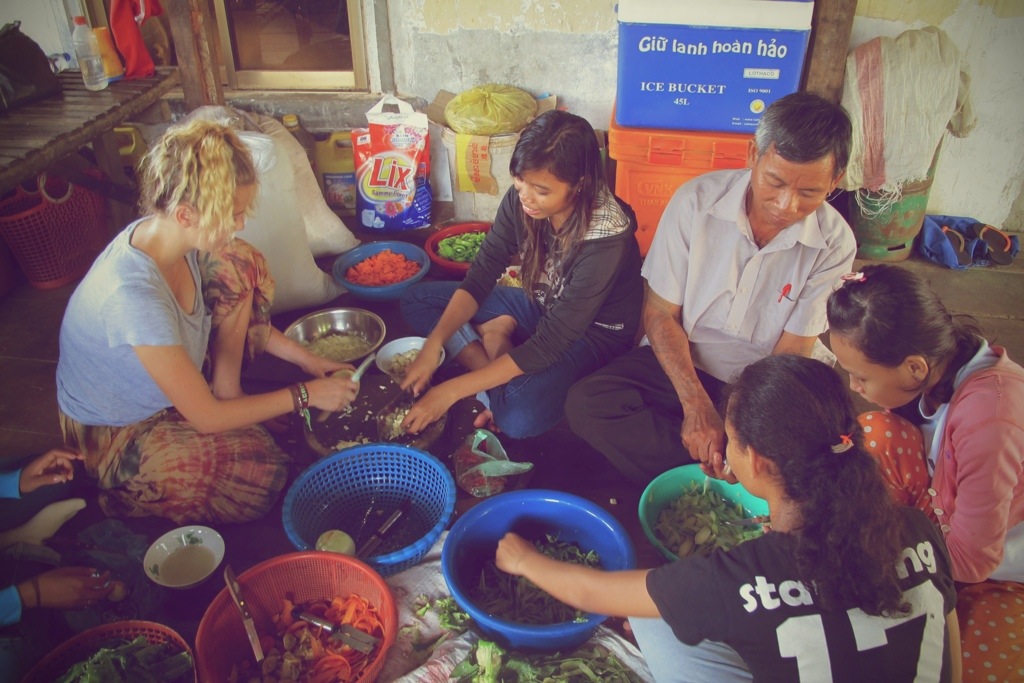 We’d already lost the kids schooling attention by the time we were home, and Emma was feeling sick and had gone back home, so they spent the morning playing “educational” games and listening to music with Frank. I really wanted to get a feel for what it was like in the kitchen side of things, always cooking meals for at least 20 people (and sometimes guests) In an out door kitchen verrrrry different from what we have at home. The older girls are in charge of this and spend there days, whilst we teach preparing the food. Never ever extravagant like today, in fact if they get vegetables usually it’s beans and that’s it (you can get a kilo of beans for about 10 cents here), and we needed all hands on deck to get all these vegetables prepared. So we washed them all and got cutting- I had the job of the spinach, green tomatoes, carrots, capsicum and lucked out with the onions as well. I was thankful I didn’t have to peal the 50 odd cloves of garlic they got or the chicken.