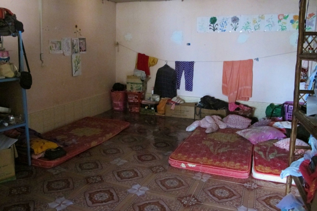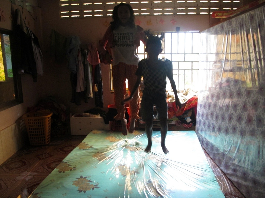 Pictured is the girls room, in the upstairs part of the complex. There are 9 girls and 1 bunk bed, so this is where most of them sleep and on these poor excuses for mattresses. Another thing to mention is that all the boys have their own bunk bed, and mosquito net and downstairs is a heck of a lot cooler. Part of the reason why they sleep on the floor is apparently its cooler, granted their room is like a sauna, but I still don’t believe it to be a valid enough excuse to not split the bunks equally. So frank and I went halves in purchasing 4 double bed mattresses so firstly they can sleep in comfort, and secondly 3 aren’t squishing onto one bed. A big thank you from some very excited girls!