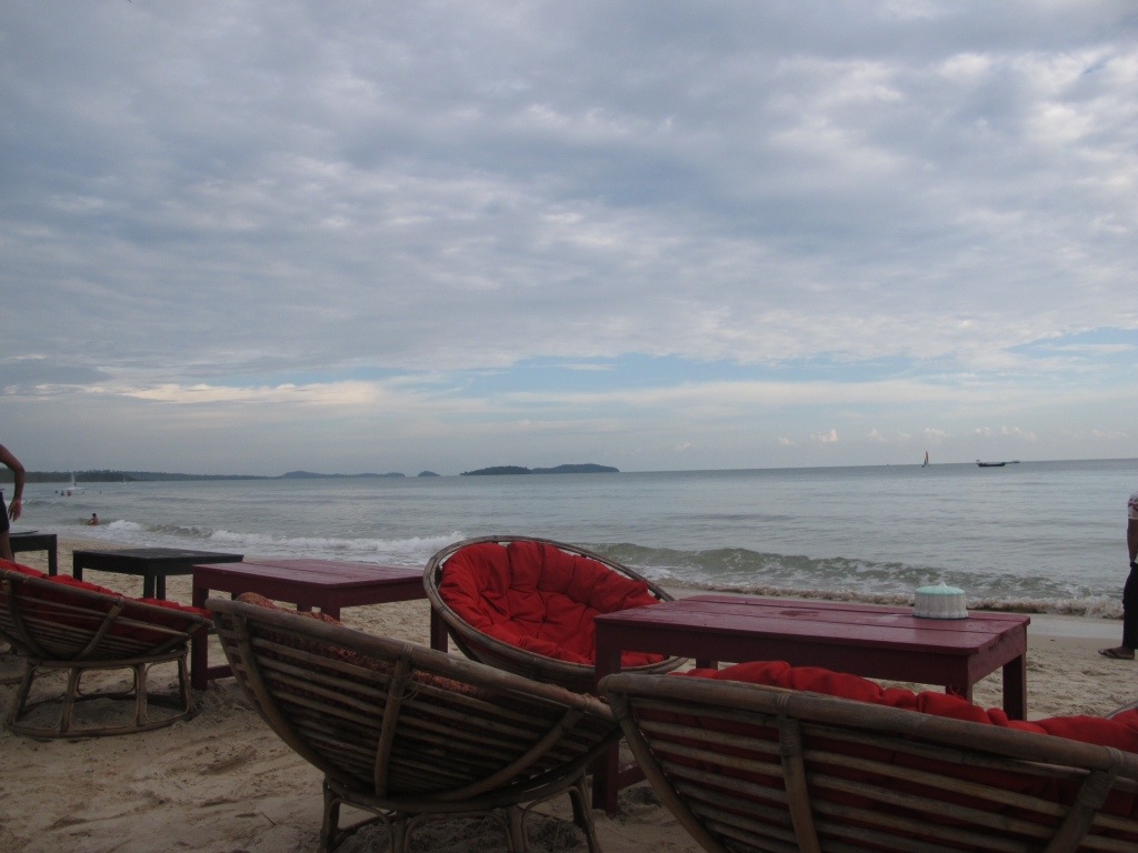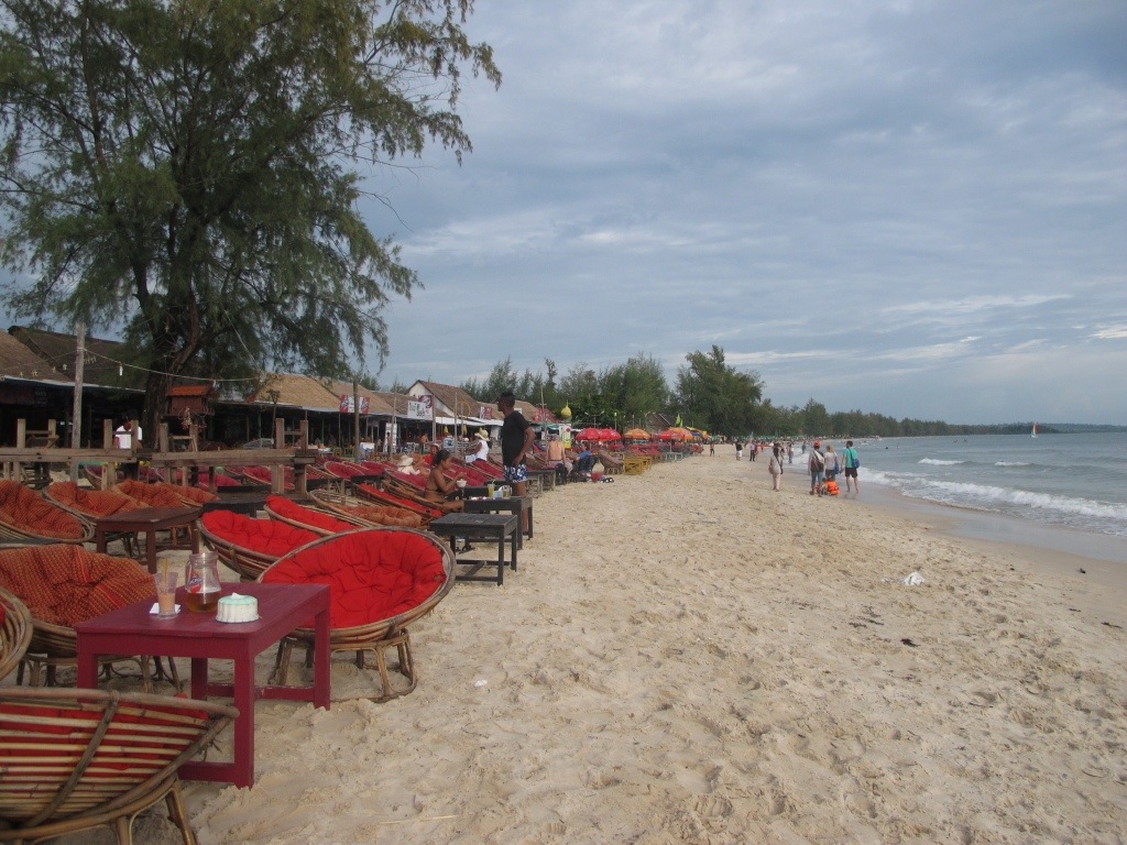 This place is paradise and hell in one. Filled with restaurants and bars one after the other, essentially serving the same thing and drinks I’m not entirely sure where people put their towels amongst the swarm of bamboo chairs that lines the beach, I wanted to check out the main area of Sihanoukville and so two guys staying in my dorm said they were keen to come so the tuk tuk was cheaper as well. There are 4 of us in the only open dorm room here cause it’s that quiet. We all felt like this trip made us appreciate Ortres beach a whole lots more. Aside from the restaurant staff hassling you, you’ve got swarms of children and ladies offering bracelets and massages and food who just want take ‘NO’ for an answer and crowd around your table and just hang there until you’ve ignored them for long enough that they move onto the next table. That said it was a cool place to be able to lounge on the beach, cocktail in hand and watch the sunset. We returned later than night as well to get our groove on at the beach front bars.