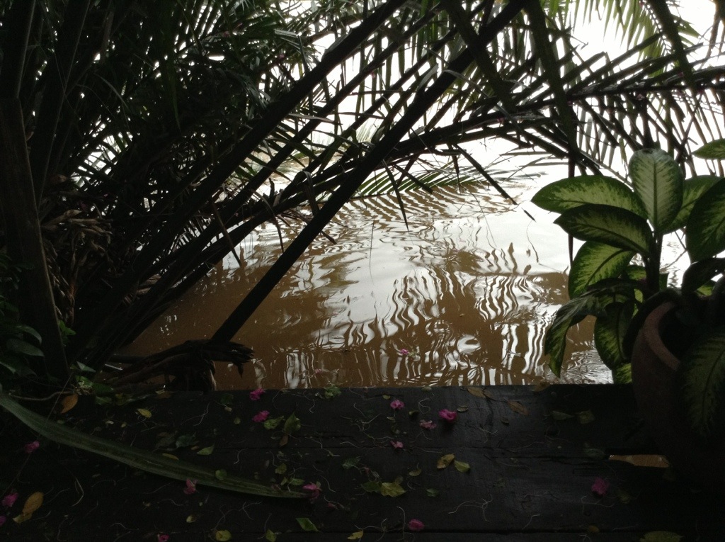I saw this place on one of the people I met in Europe’s photo stream two days ago. I was super down about all these bites and the weather making what I had hoped to be an amazing week of sunshine an absolute nightmare. Starting to feel very homesick, I decided I needed to keep moving, and when I saw and looked into this place it was exactly what I needed. After almost having my rain jacket lost at the laundromat (not my fault, and entirely a necessary thing right now!) and the mini van breaking down multiple times on the trip here, I decided Sihanoukville this time for me is cursed. I arrived in Kampot and all my worries are gone again. It’s like a rainforest version of Pursat. A small town, barely any cars, lots of bikes and then this hostel. WOW! Where do I start, it’s tropical paradise for 3 dollars a night. If I had company I’d be staying in either their floating bungalow (yes floating on the river) or roof top bungalow which boasts amazing sunrises. The bar is suspended out over the water, and you just take a step down onto a platform and jump in. Friday nights are famous around here for all the people working in Cambodia to come, party, listen to live music and chill out at the bar here (they even have a music recording studio!) An absolute gem of a find. If you need me I’ll be living off coconuts and this salad for the next who knows…