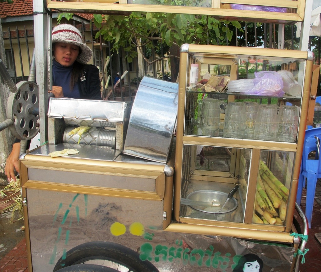Posted on September 24, 2013 by kaitlingordon Fresh, hand-pressed sugar cane juice on the river front for 25cents. 10.619607 104.167674 Share this: Click to share on X (Opens in new window) X Click to share on Facebook (Opens in new window) Facebook Like Loading... Related