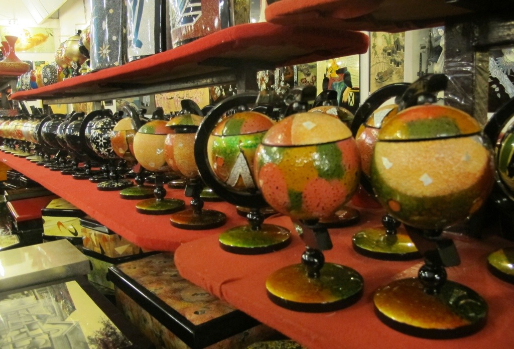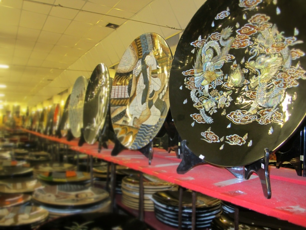 Enroute to the tunnels we, and all other tour buses seemed to have a mandatory toilet stop at this “factory” and shop. Here we had men, women, girls and boys creating masterpieces, some making what looked like eggshell mosaic, others carving pearl into or creating paintings, some sawing and others polishing. All the items they were working on we’re displayed to be sold at an extraordinary price inside. A very Asian thing to do…