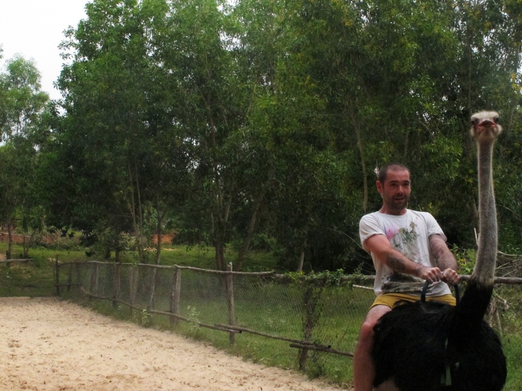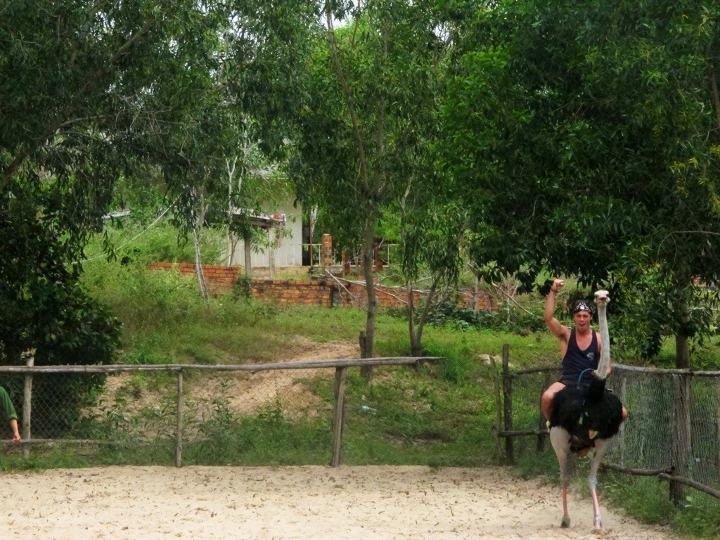 Posted on October 1, 2013 by kaitlingordon The boys decided to pay 10,000 dong and ride an ostrich (or about 50 cents). I was really not okay with it, but admittedly it was a little funny to watch them be paraded around the ring holding on for dear life. 10.951859 108.212519 Share this: Click to share on X (Opens in new window) X Click to share on Facebook (Opens in new window) Facebook Like Loading... Related