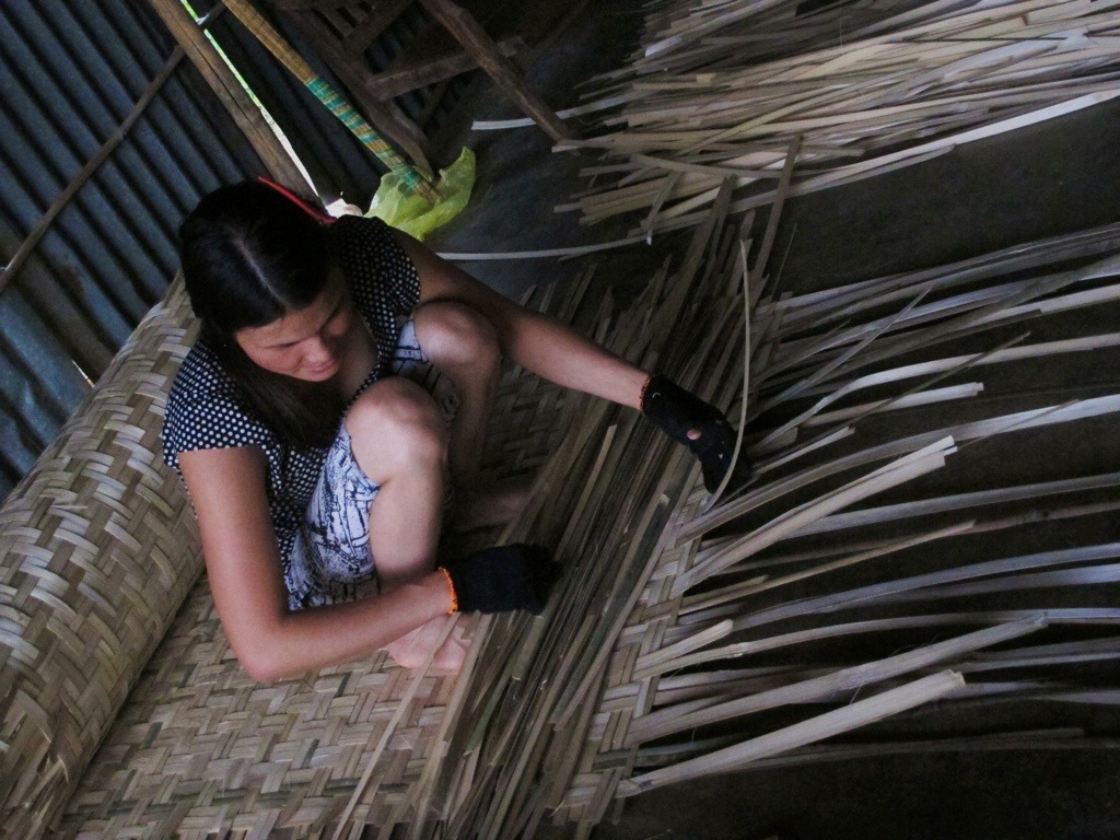 No photo could adequately show how fast this lady was weaving these mats. The way she is sitting is how ALL women seem to sit here in Asia… Olivia and I tried it and it ain’t comfy. These mats are used for housing constructions as well as silk worm cocoons to store for their silk production line here.