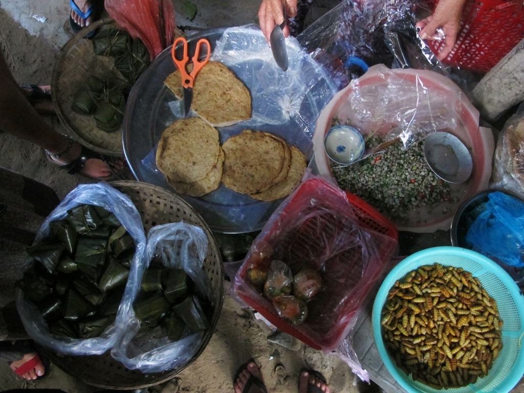 Sampling local luxuries Posted on October 14, 2013 by kaitlingordon Here, with the help of our local guide we sampled and purchased local delights, things that usually we wouldn’t know or be game to touch. Fish cakes, insects, sweet bean dishes, sticky rice in banana leaf and some peanut rice brittle. 15.883544 108.326495 Share this: Click to share on X (Opens in new window) X Click to share on Facebook (Opens in new window) Facebook Like Loading... Related