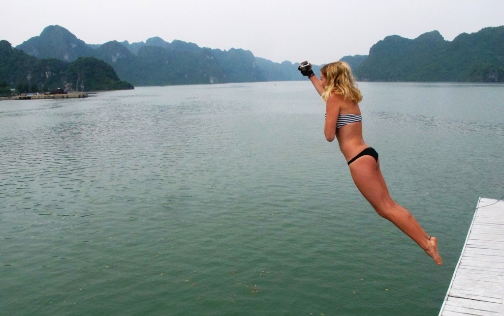 This is me jumping of our 7 meter high boat and go pro-ing it at the same time…this time was dandy