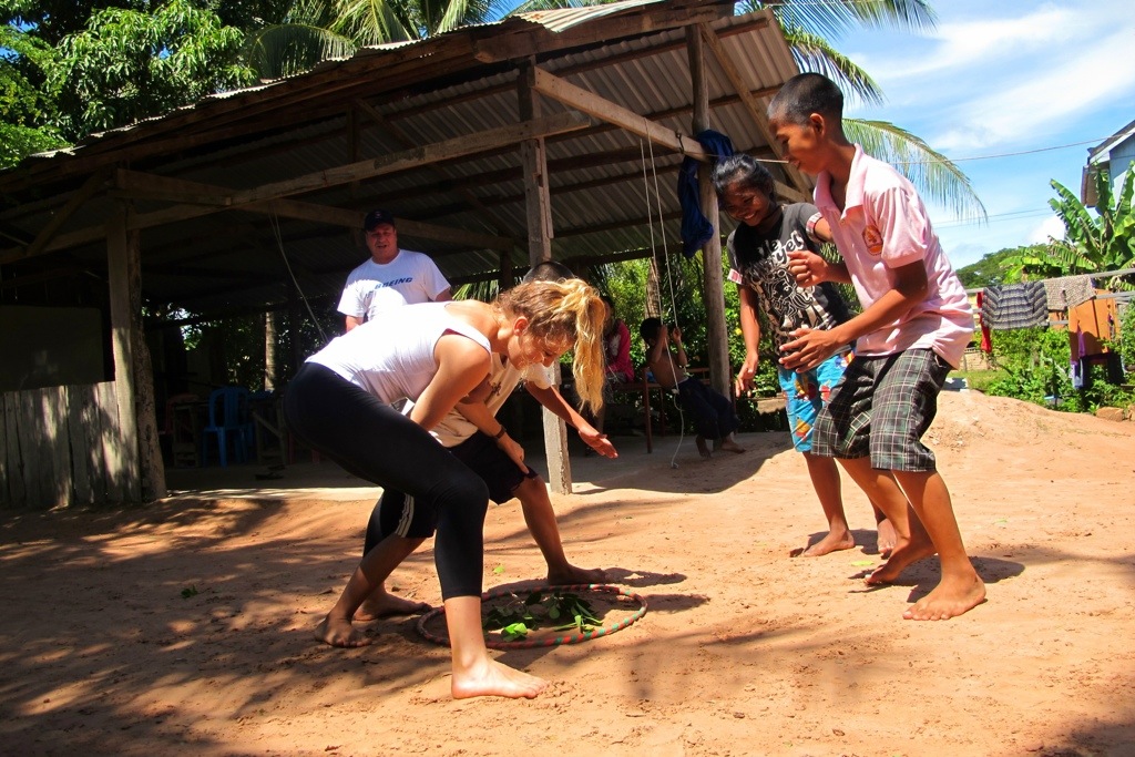 The director was away today and Emma is still in Siem Reap. The kids of course were mucking up a lot because Borin was not there, so after an hour of trying and failing to get the concept of adjectives in their heads we played games for the next hour and they were more than okay with this. Here is a game called ” Steal the base” or something along those lines, two teams on either side and when your number is called you have to get the branch without being tapped by the other team. It was a vicious and heated competition.